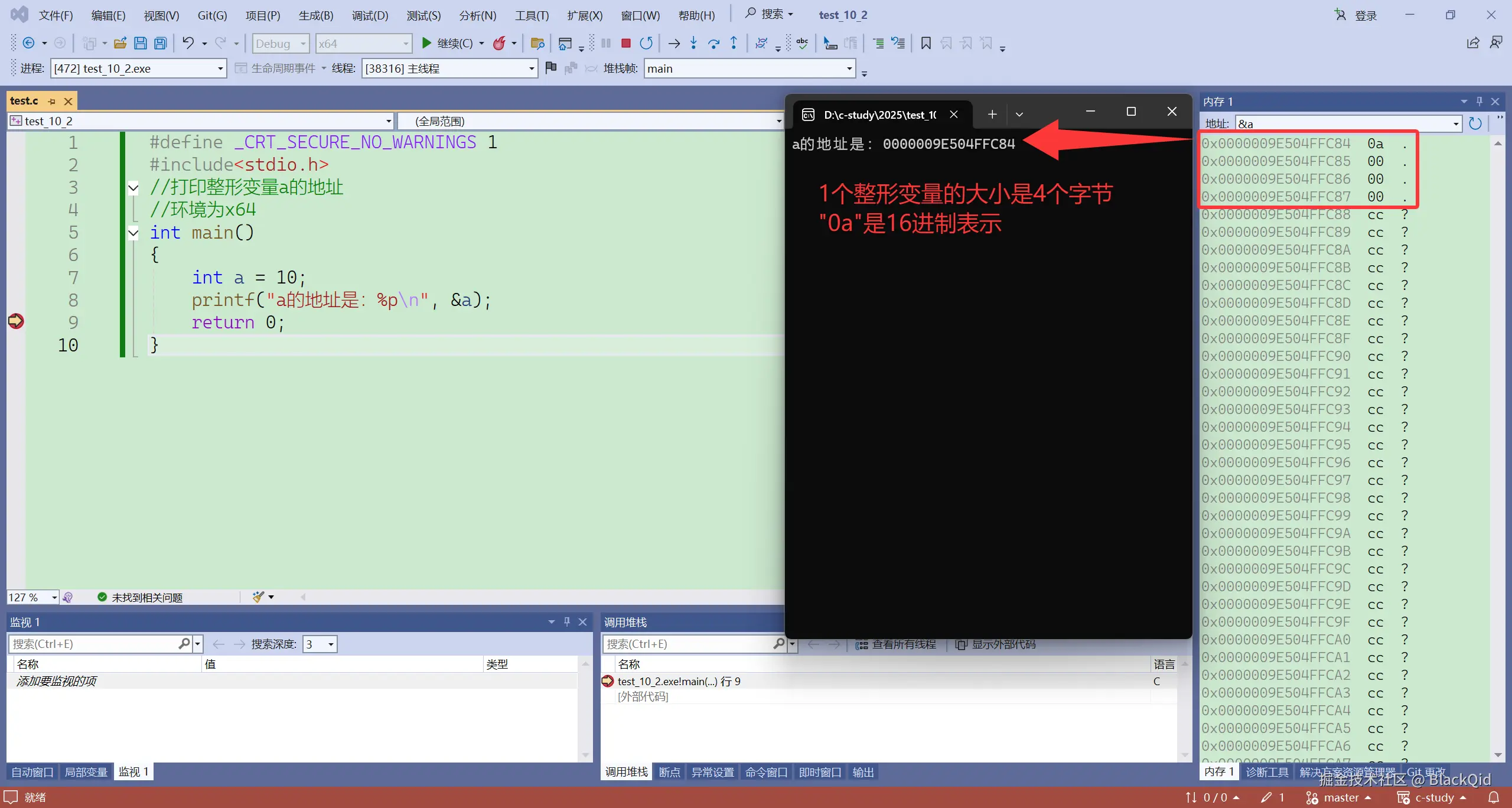 理解了内存和地址的关系,回到C语言中,创建变量其实就是向内存申请空间。例如int a = 10