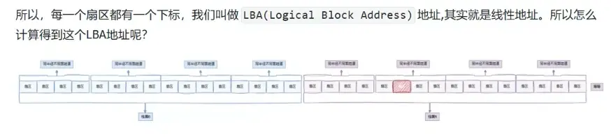 那么,什么是 LBA 地址呢,这个 LBA 地址,实际上我们可以直接理解为是逻辑块的地址,英文名字叫做 logical block address,也就是逻辑块的地址,翻译过来就是这个样子的;
