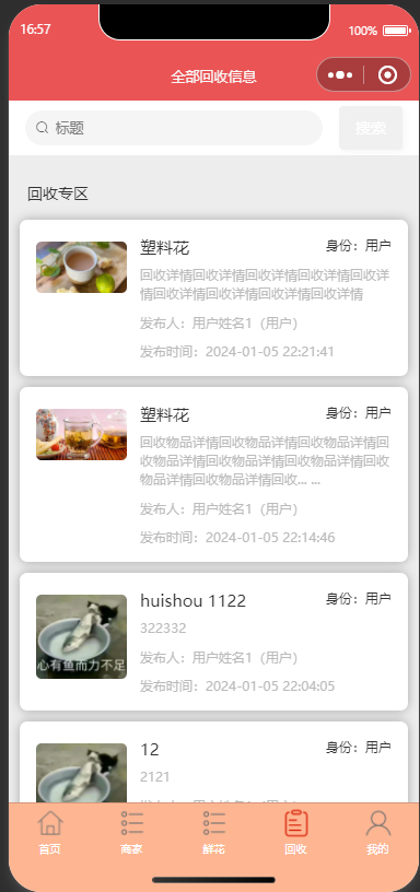 用户在该界面可以查看提交的回收信息,查看回收信息列表,点击查看回收信息详情,如图5.3.4所示。