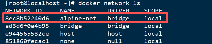 四列分别为:网络ID、网络名称、网络驱动、作用域。