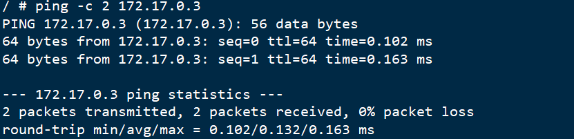 接着,还在该容器中通过ip地址来ping第二个容器(alpine2)