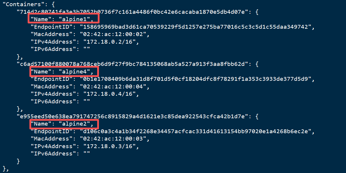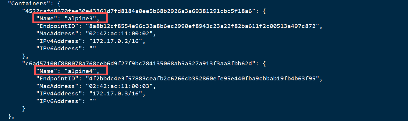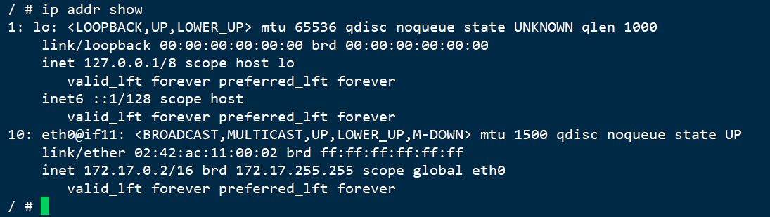 第2个接口ip地址为172.17.0.2,与alpine1地址相同。