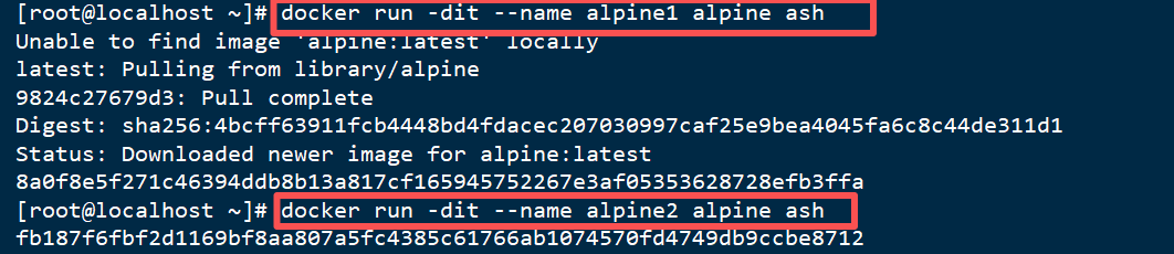 docker run -dit --name alpine2 --network alpine-net alpine ash
