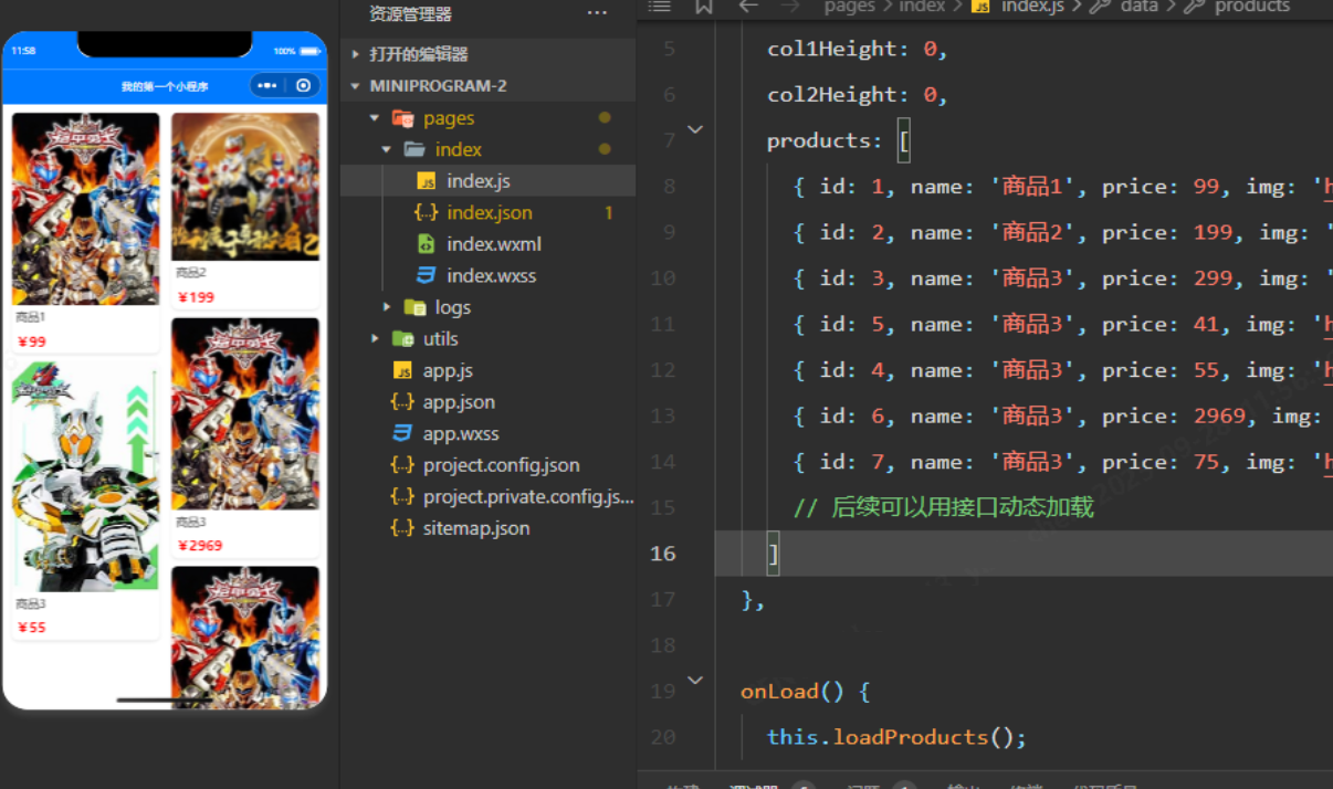 <view class="product" wx:for="{{col1}}" wx:key="id">