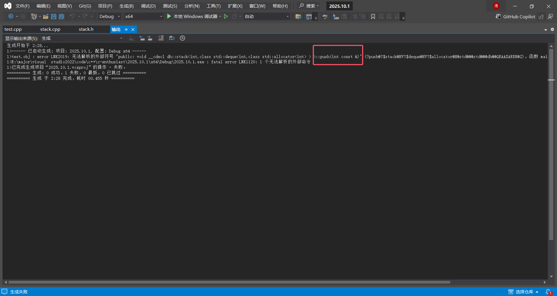 只有声明,没有定义,实例化失败,缺少地址。 - 在
