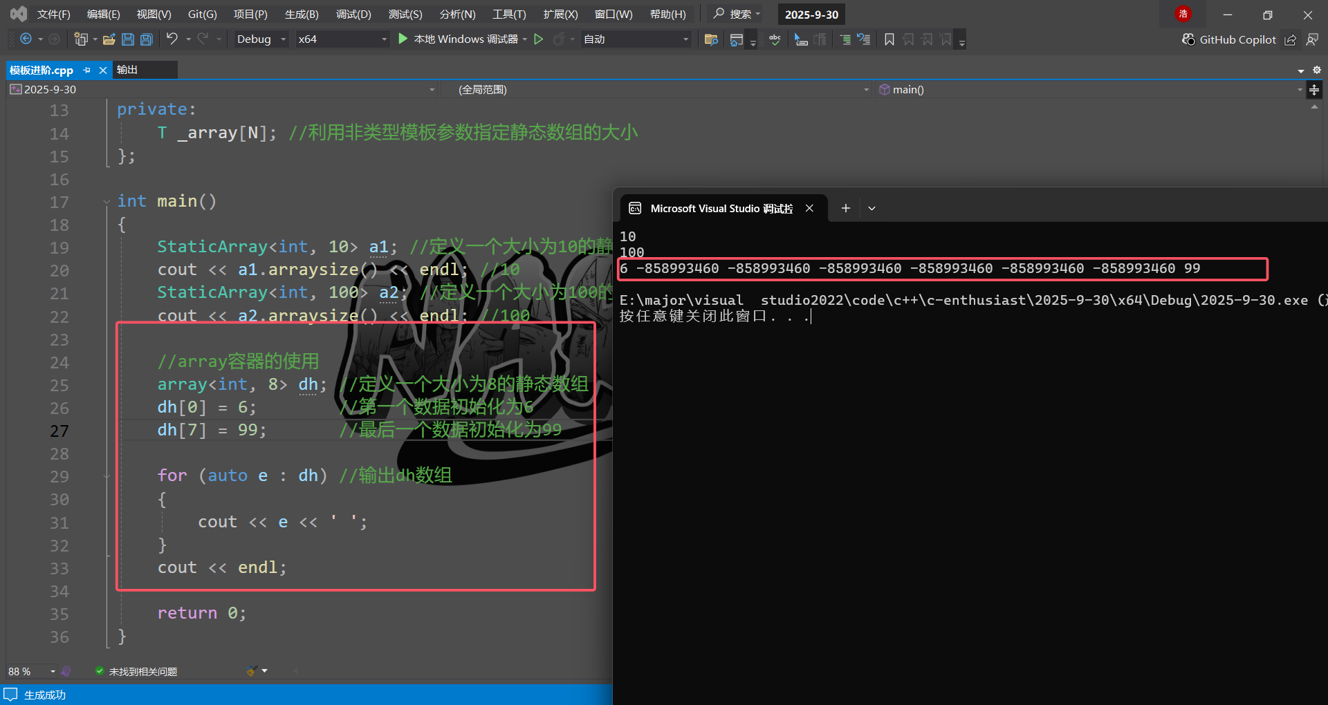 例如,我们要实现一个静态数组的类,就需要用到非类型模板参数。