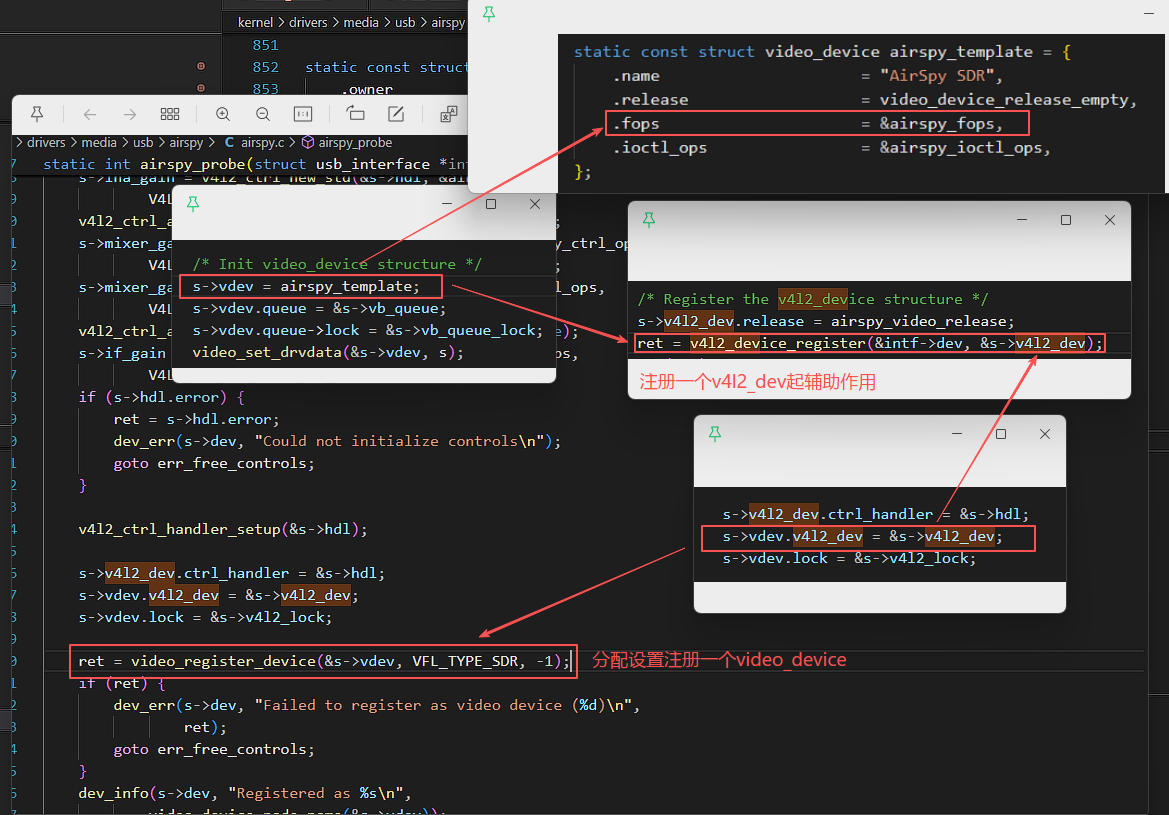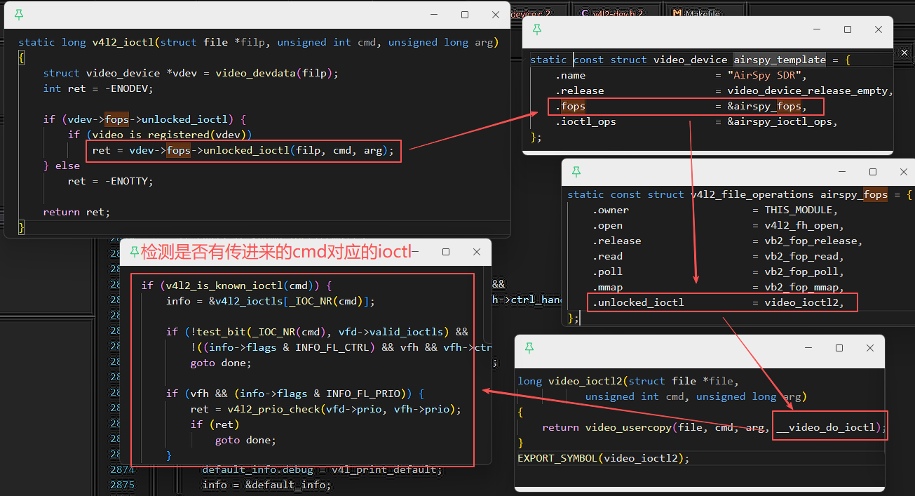 一套驱动程序对应多个设备节点时才需要这些锁,比如某个驱动生成了设备节点/dev/video0,/dev/video1,APP1访问/dev/video0,APP2访间/dev/video1, APP1、APP2有可能同时调用驱动里同一套代码这时,驱动里就要进行互斥操作。但是我们这个虚拟驱动程序只会产生一个设备节点,所以无需实现互斥操作。