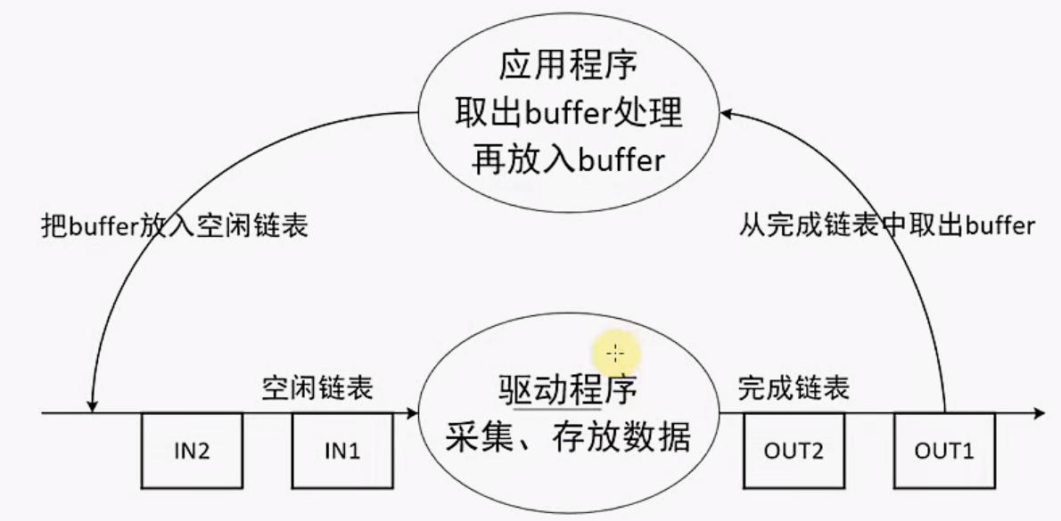 /* 把这个buffer告诉硬件相关的驱动程序,应用程序传入多个buffer,驱动程序使用链表来管理 */