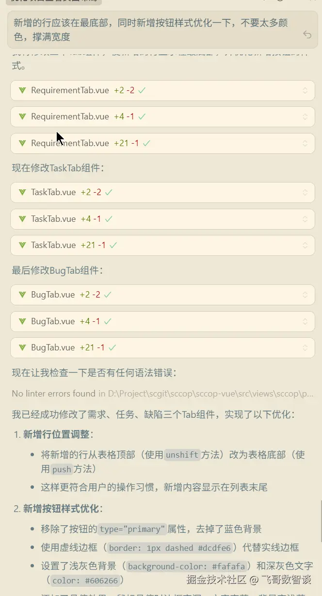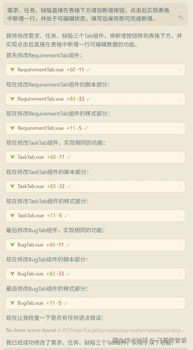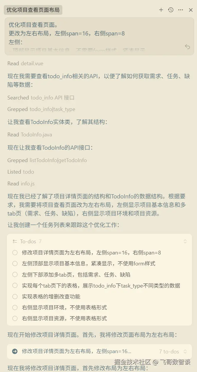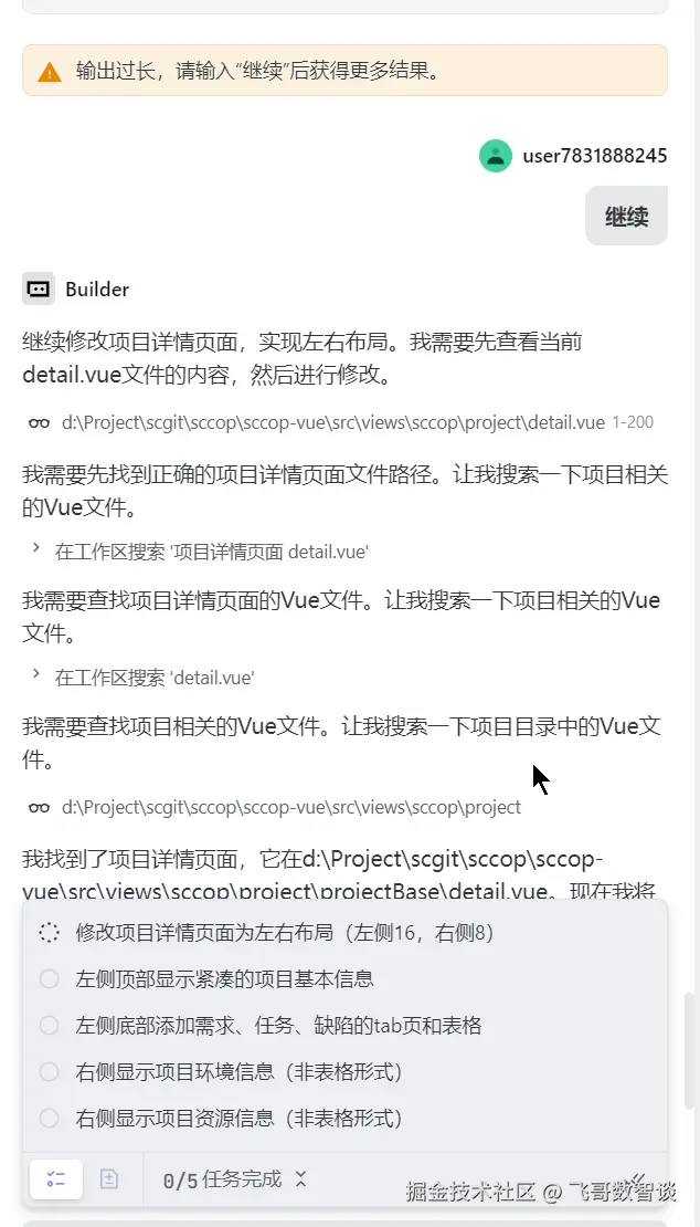为了测试,我没有指定项目查看文件,因此,AI 先是扫描查找目标位置。