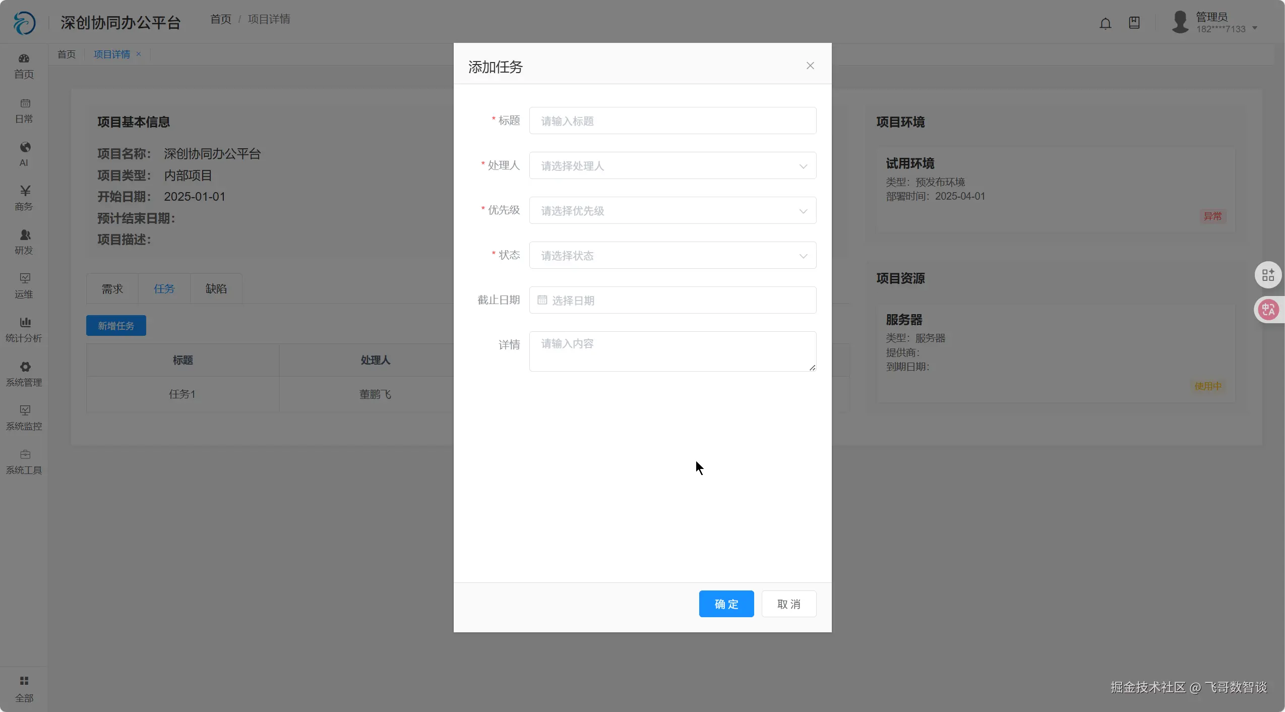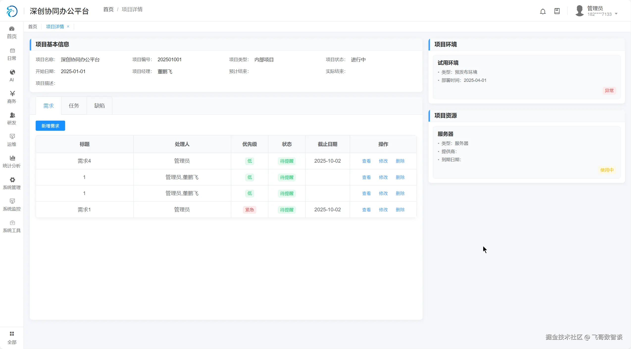 实战场景依然是基于我们的"协同平台",系统内有一个"项目"模块和"待办"模块。