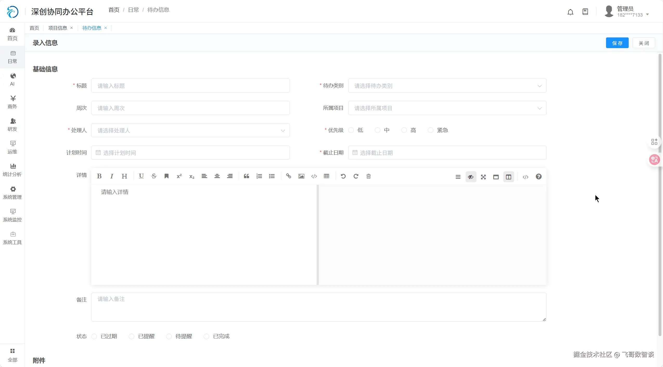现在还是点击"新增"按钮通过弹窗实现的新增功能,针对大部分简单事项,操作不够简洁。