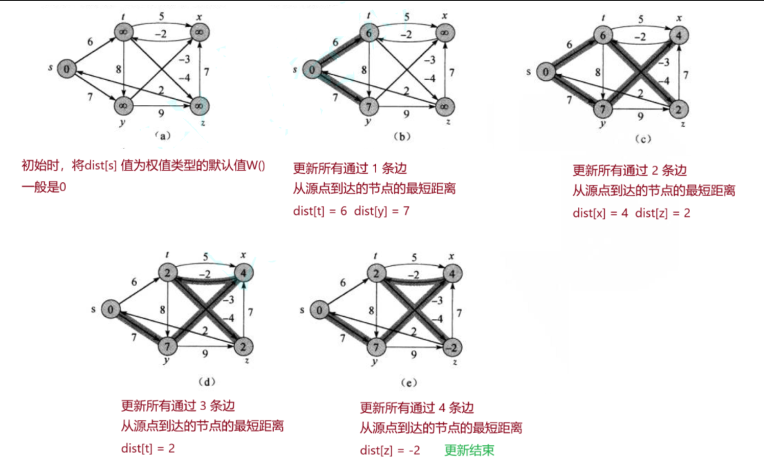 (1)最外层循环表示进行 n-1 轮松弛更新