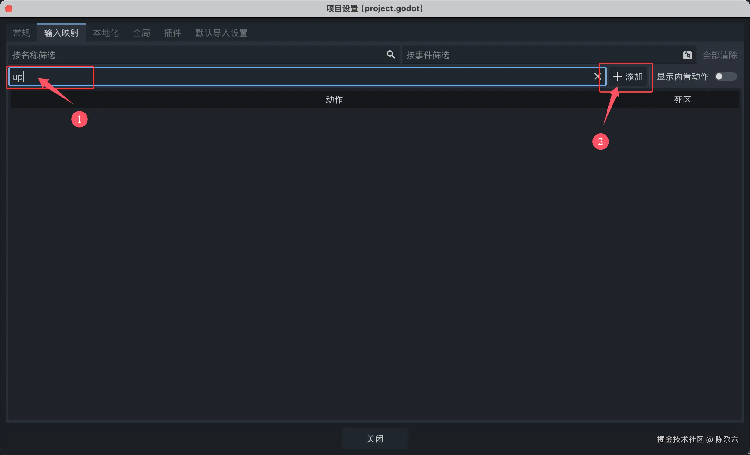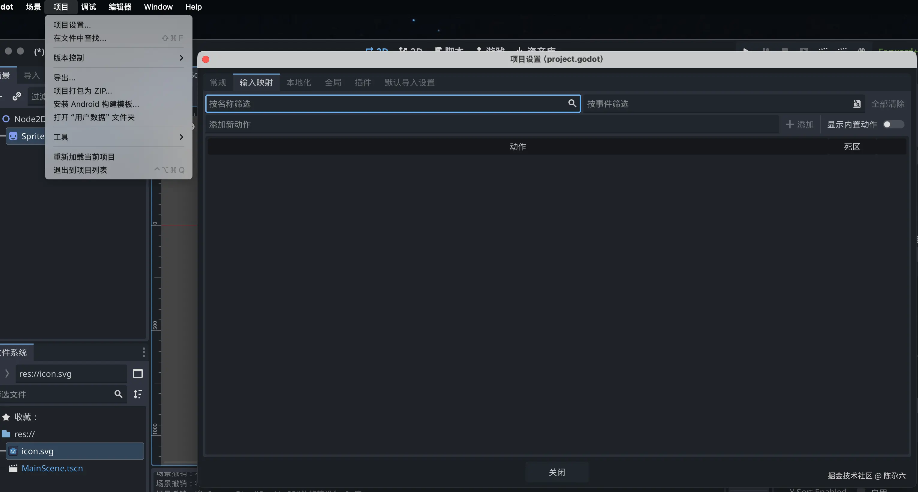 我们首先要接收键盘输入。好消息是:不需要自己写底层代码去监听操作系统事件,Godot 已经封装好了。我们只需要"声明"有哪些动作(Action),并把它们与键盘按键对应起来。