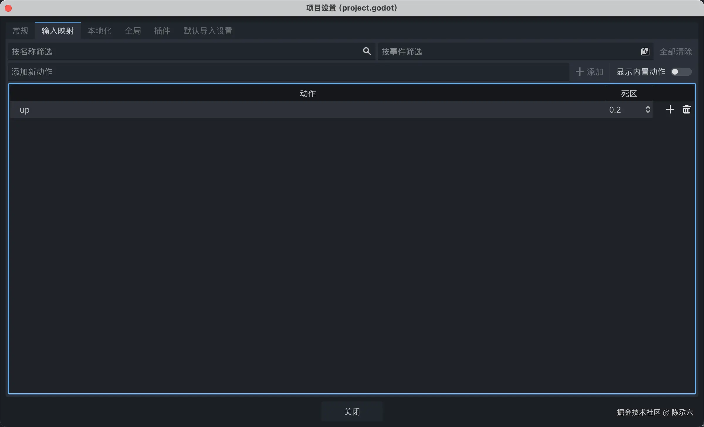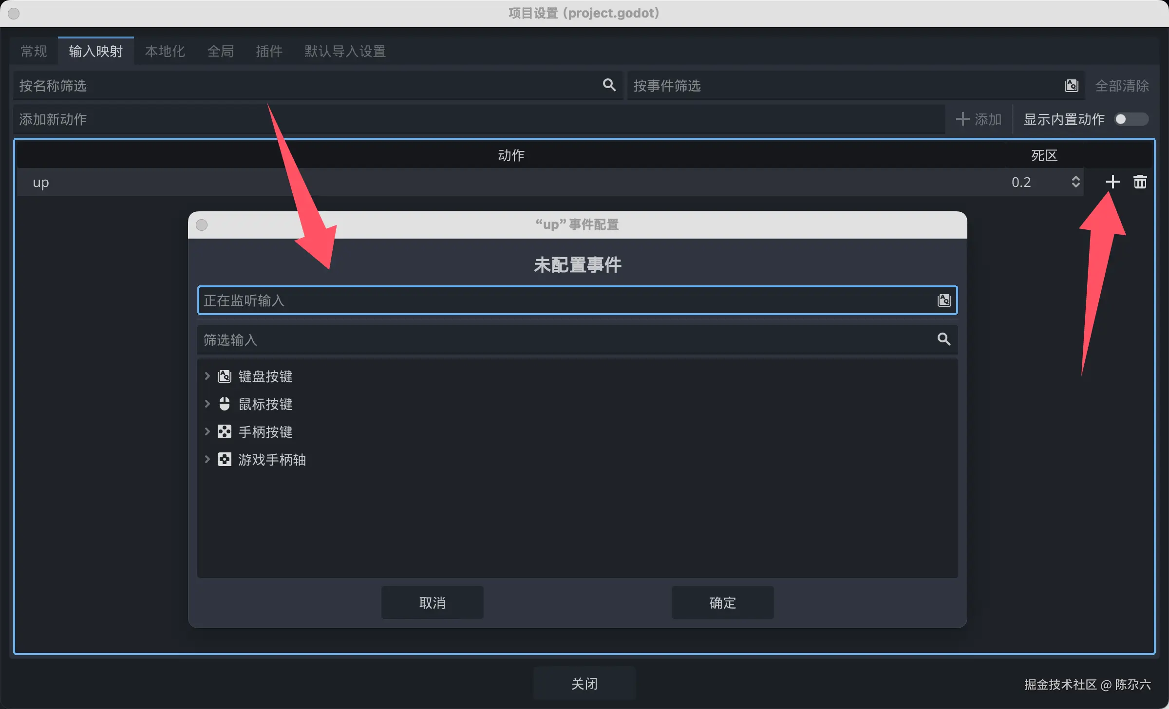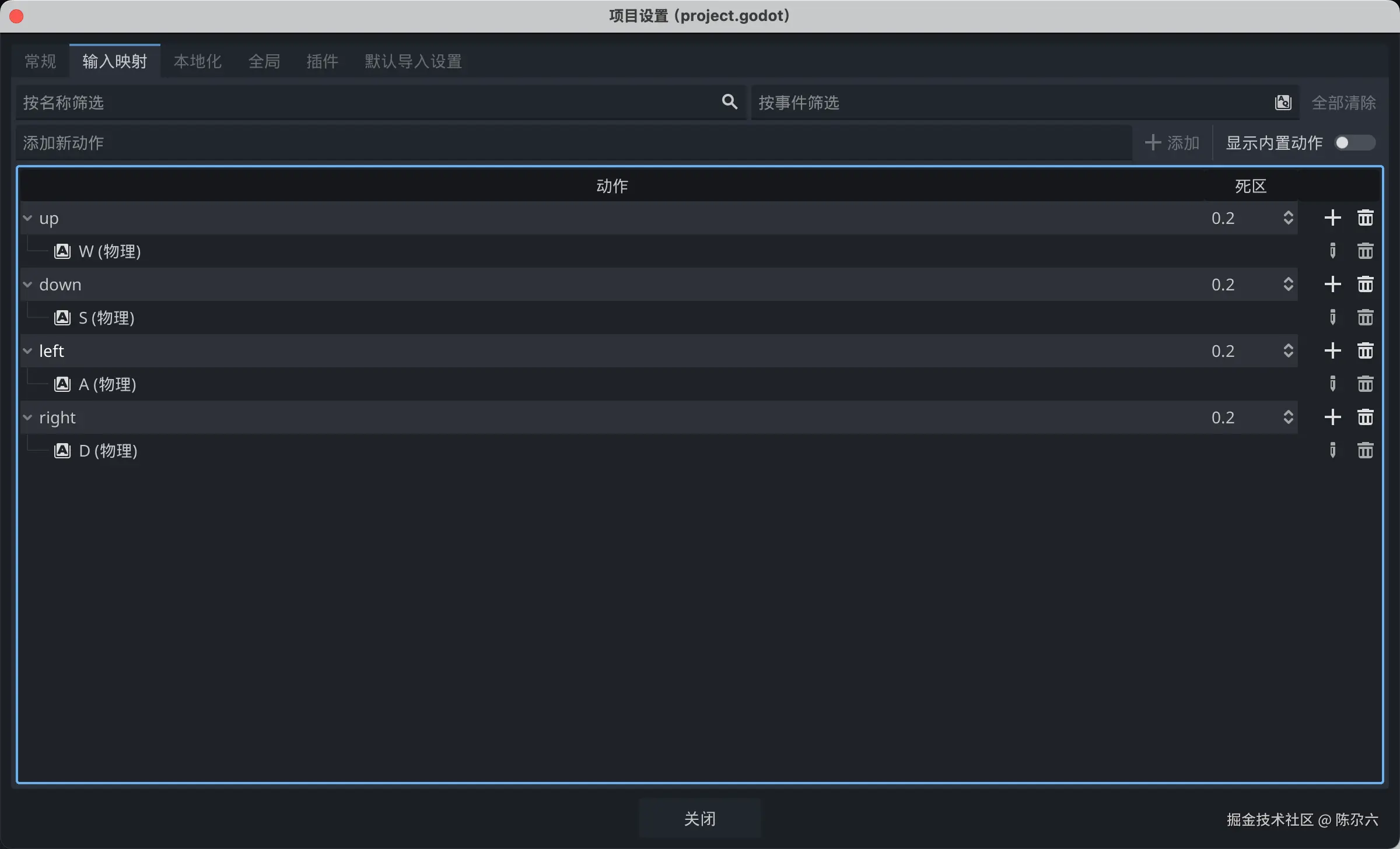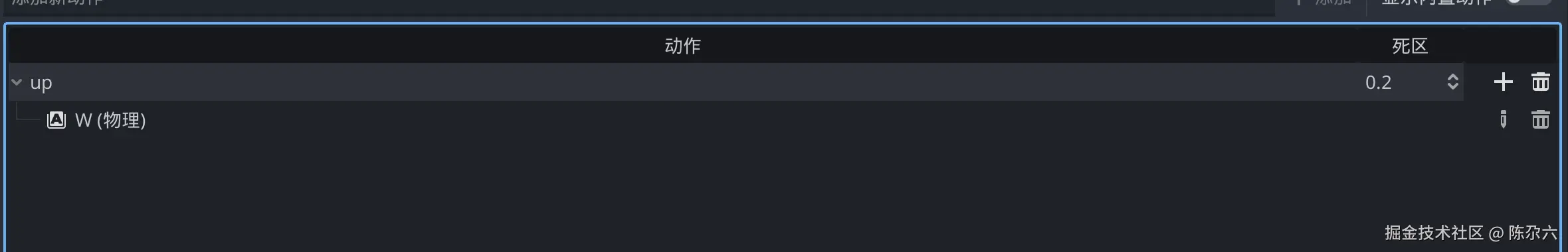 一个 Action 可以绑定多个按键(比如同时支持 方向键 和 WASD),Godot 会把它们视为同一"动作"。
