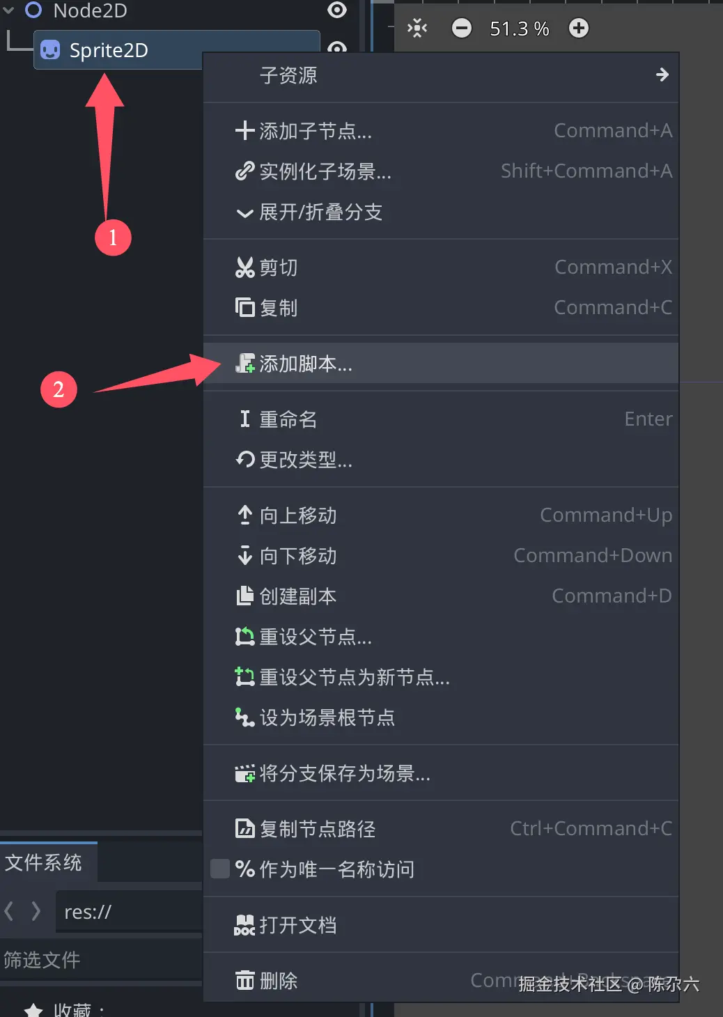 (或其它精灵节点),右键 → "附加脚本"(或点击右上角脚本图标)。