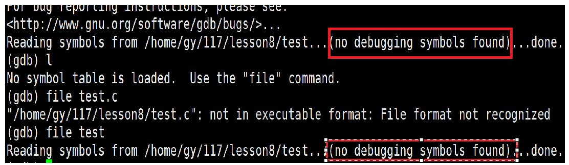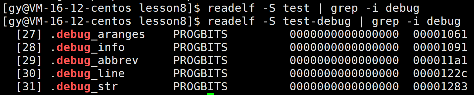 由于默认是生成release版本,所以test中无调试信息,没有debug信息,test-debug是debug版本,所以查找到了debug相关信息