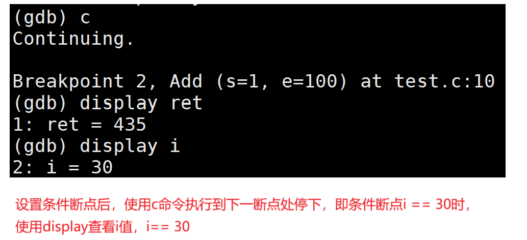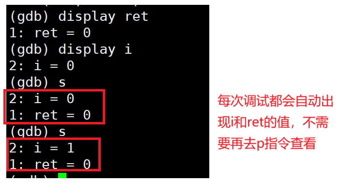 才会打印变量值,有什么办法能在调试的时候直接显示查看变量的值吗? - 使用display 变量跟踪显示变量,类似于vs中的监视窗口