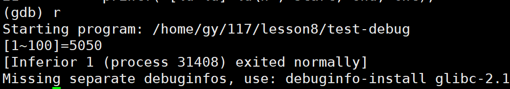 - r:从程序开始连续执行,如果有断点执行到第一个断点处,如果没有断点,执行到程序结束