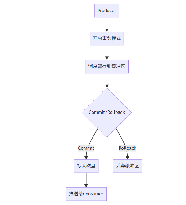 - 消费者端不保证:仅生产者端事务