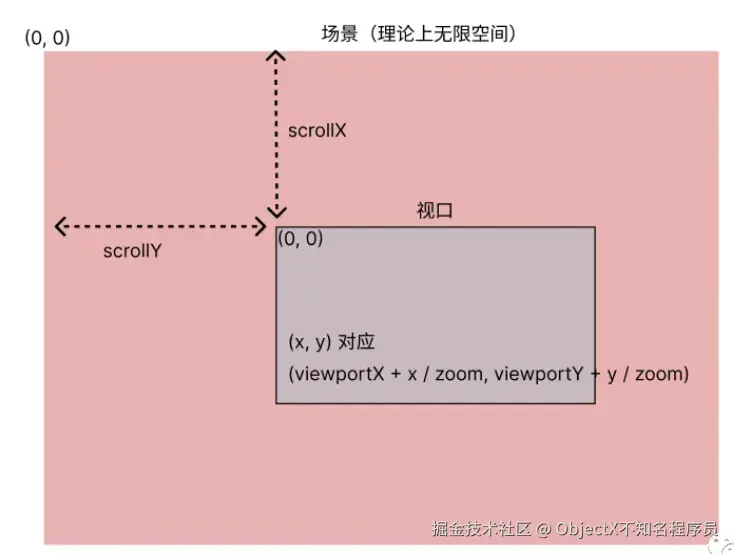 上一篇我们讲解了分层事件系统的设计,本篇我们将在事件系统的基础上实现无限画布、标尺、网格绘制,无限画布实际上只是理论上的无限,绘制的仅仅是视口区域,通过事件触发移动和缩放,重新计算视图矩阵,更新渲染