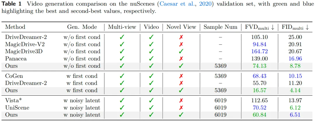 每个ControlNet块整合两部分信息:通过预训练VAE编码的道路草图潜变量,以及通过T5编码器生成的文本嵌入。3D边界框、自车轨迹与文本特征通过跨注意力进一步融合为统一的场景级信号,为跨时间与跨视角的一致性视频合成提供细粒度引导。