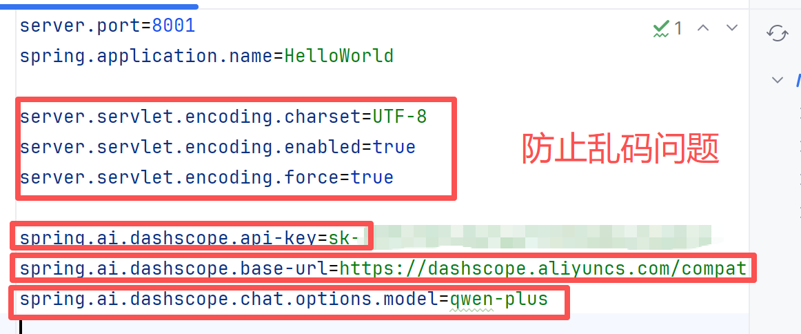 当我们进行配置的时候,如果不进行指定,那么我们会默认使用通义千问,只需要保留API-key即可。当我们想使用spring ai的时候只需要换一下dashScope的依赖即可,然后三件套改成以下形式也是一样的。