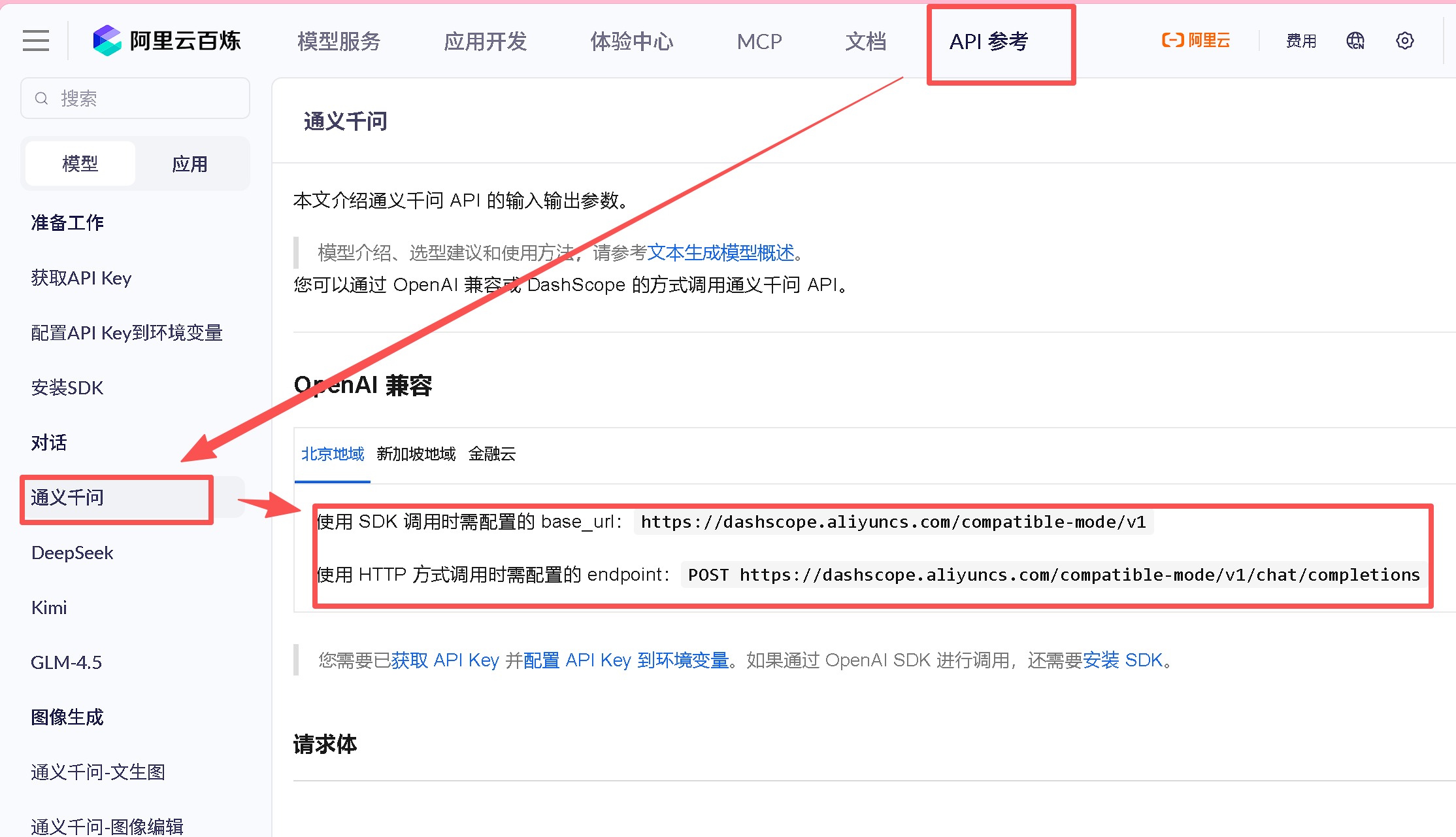 获取模型名之后然后获取baseURL开发地址:https://dashscope.aliyuncs.com/compatible-mode/v1