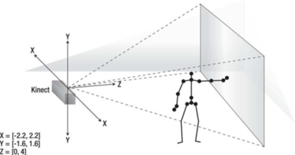 Kinect技术可追踪20个骨骼关节点,骨骼数据包含20个关节点的X,Y,Z坐标信息,我们利用Kinect SDK