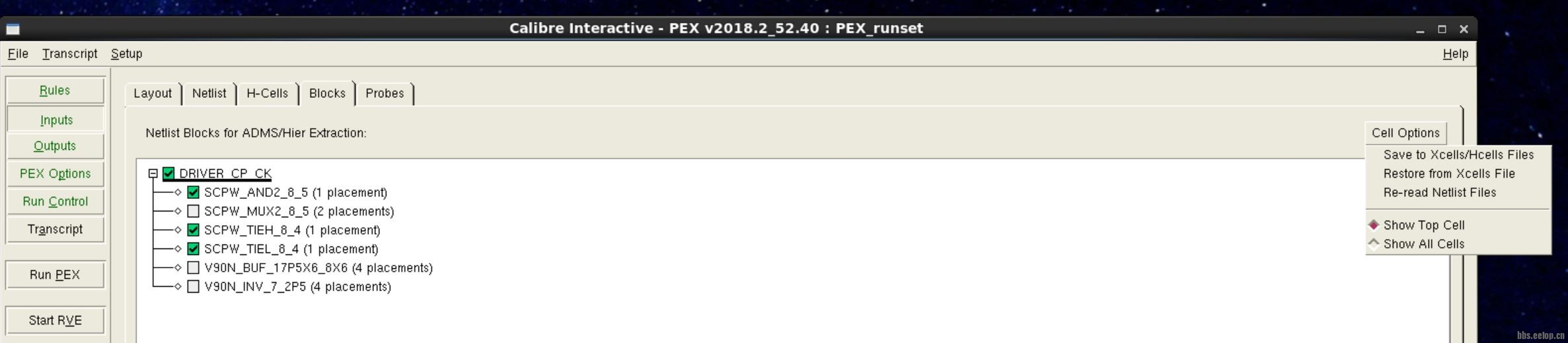 gate level + 如图片所示可以生成hcell文件和Xcell文件(决定你要屏蔽的子模块,两文件格式一样的),PEX生成的DSPF文件会不提子模块的RC,在DSPF文件的最后,会include子模块的前仿网表。