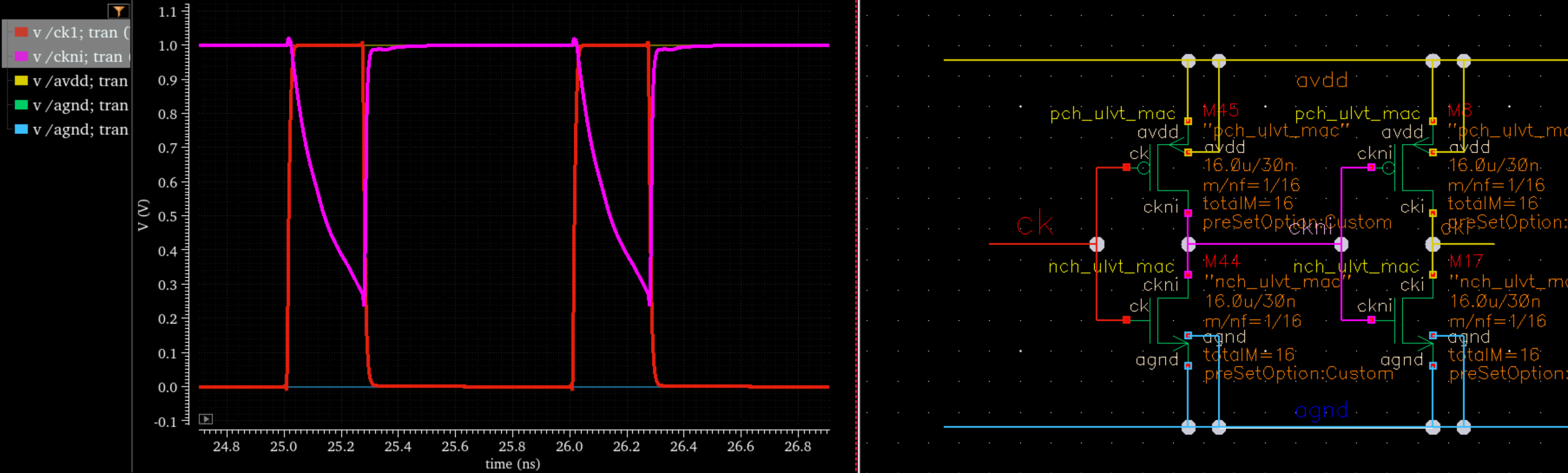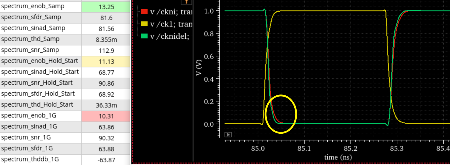 【Step1】采用方法三exclude原理图中ckni这条线,后仿真结果时钟正常,性能一般(先不管)。