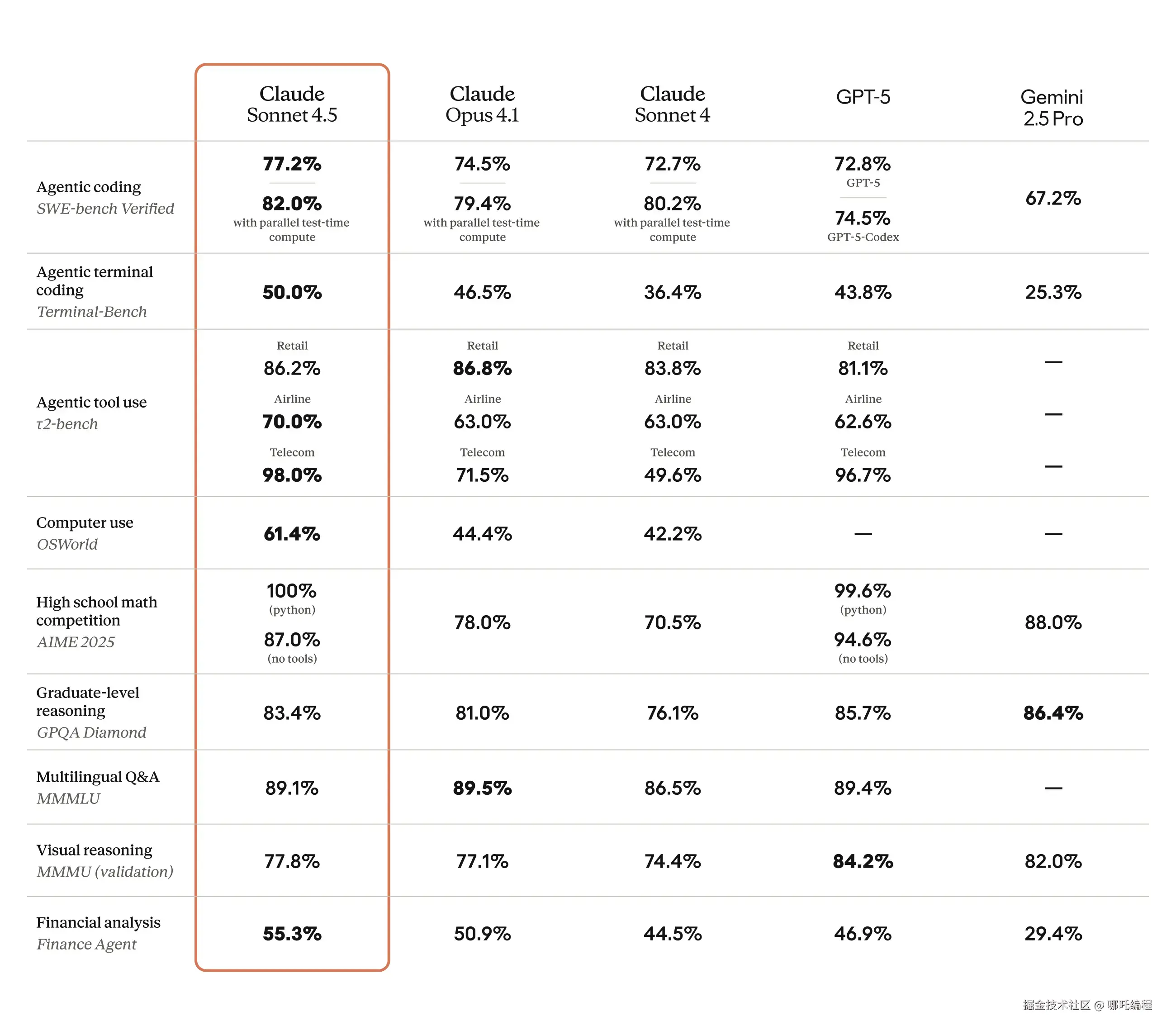 Anthropic 在代码生成与软件工程任务上的能力已大幅提升,特别是在复杂 bug 修复与函数实现场景中更具优势。Sonnet 4.5 不仅在单模型下表现优秀,还通过并行推理方式显著优化了准确率。