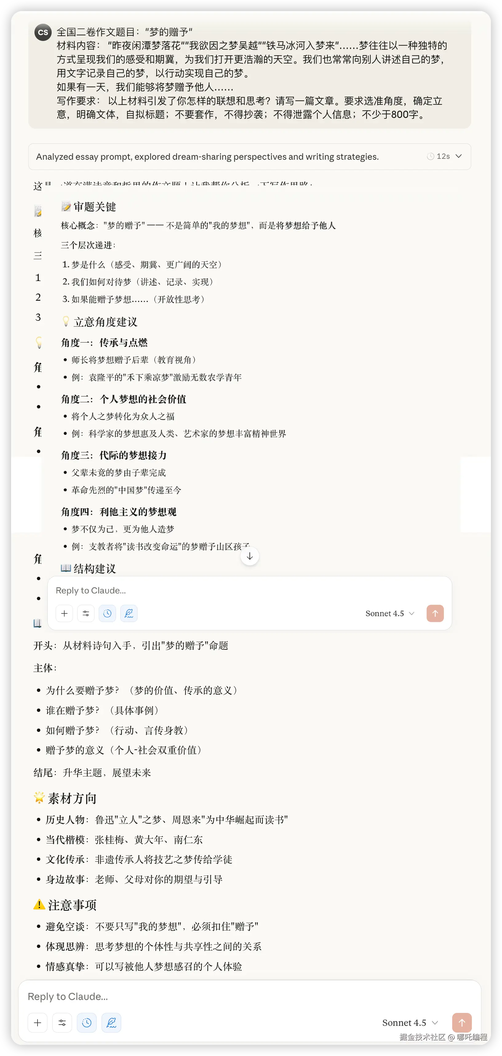 全国二卷作文题目:"梦的赠予" 材料内容: "昨夜闲潭梦落花""我欲因之梦吴越""铁马冰河入梦来"......梦往往以一种独特的方式呈现我们的感受和期冀,为我们打开更浩瀚的天空。我们也常常向别人讲述自己的梦,用文字记录自己的梦,以行动实现自己的梦。 如果有一天,我们能够将梦赠予他人...... 写作要求: 以上材料引发了你怎样的联想和思考?请写一篇文章。要求选准角度,确定立意,明确文体,自拟标题;不要套作,不得抄袭;不得泄露个人信息;不少于800字。