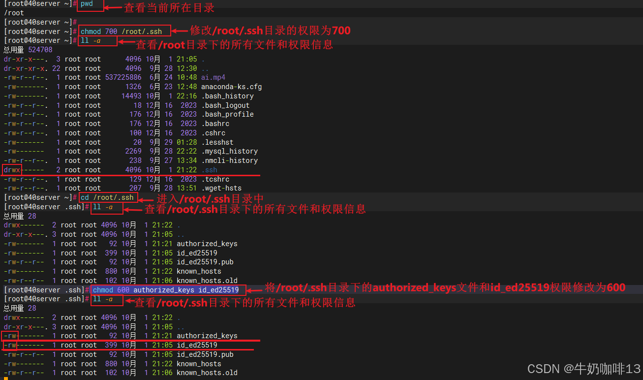 《2》检查【/root/.ssh/ authorized_keys】与【/root/.ssh/ id_ed25519】权限是不是【600】(即:只有文件所有者可以读写)。