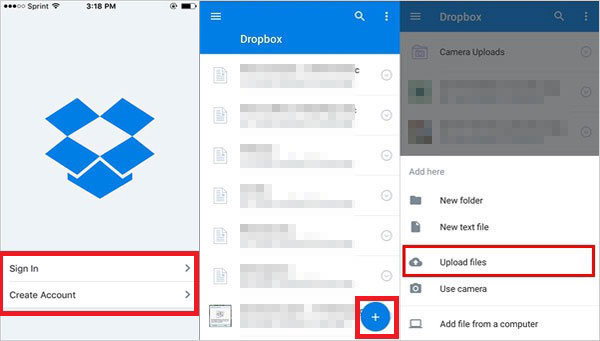 - **备份:**从Google Play安装Dropbox并登录。点击"+"按钮上传照片、视频或文档。在设置中启用"相机上传(可选)",以自动备份照片和视频。