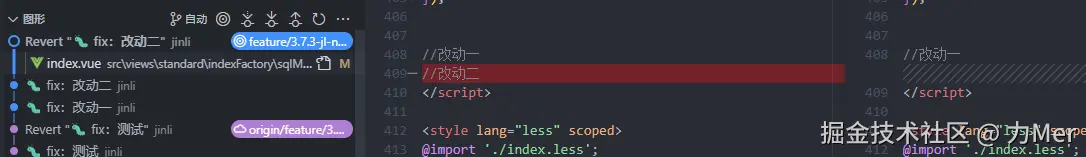 接下来我会执行 git reset --hard <指定操作的commit ID> : 改动二的commit ID:7b1b296e83530bd016c5787d2de7da77ac48ee79