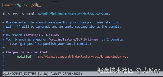 终端返回的内容HEAD is now at 7b1b296e8 🐛 change:改动二