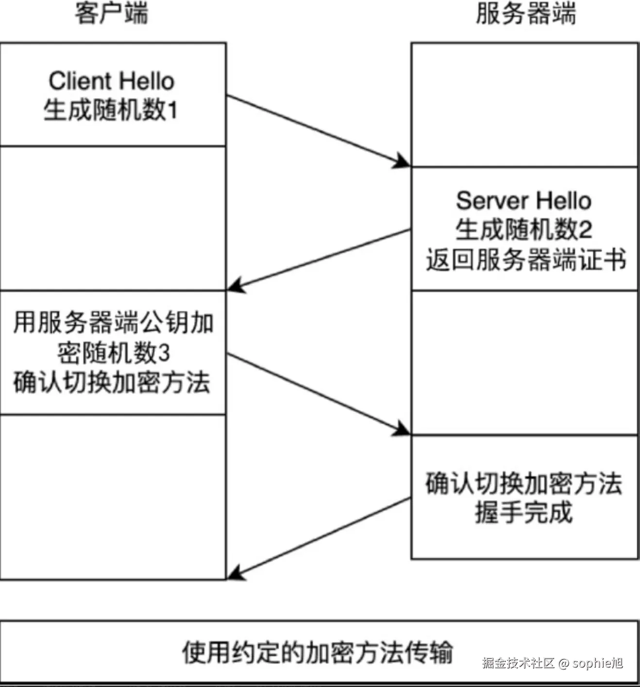 - 双方验证:解密对方Finished消息 → 比对握手完整性 → 确认无中间人篡改