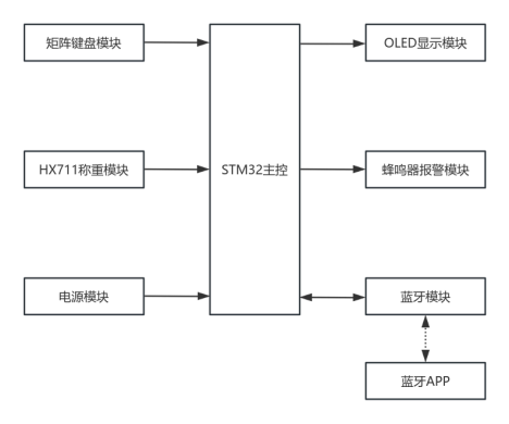 本课题研发的智能电子秤系统,在技术创新层面具有多重突破价值。以 STM32F103C8T6 为核心的主控方案,充分发挥其高性能处理能力与丰富外设资源,为系统的多功能集成奠定硬件基础。HX711 称重模块与主控芯片的协同设计,通过高精度 A/D 转换与数字化信号传输,将称重误差控制在更细微的范围内,推动电子秤从 "粗略计量" 向 "精准感知" 升级。蓝牙模块与手机 APP 的联动机制,打破了传统电子秤的信息孤岛状态,构建起 "设备 - 终端 - 用户" 的实时交互链路,为计量设备的物联网化改造提供了可复制的技术范式。这种 "硬件模块化 + 软件智能化" 的设计思路,也为嵌入式系统在计量领域的应用积累了实践经验,有助于推动相关技术的标准化与产业化。