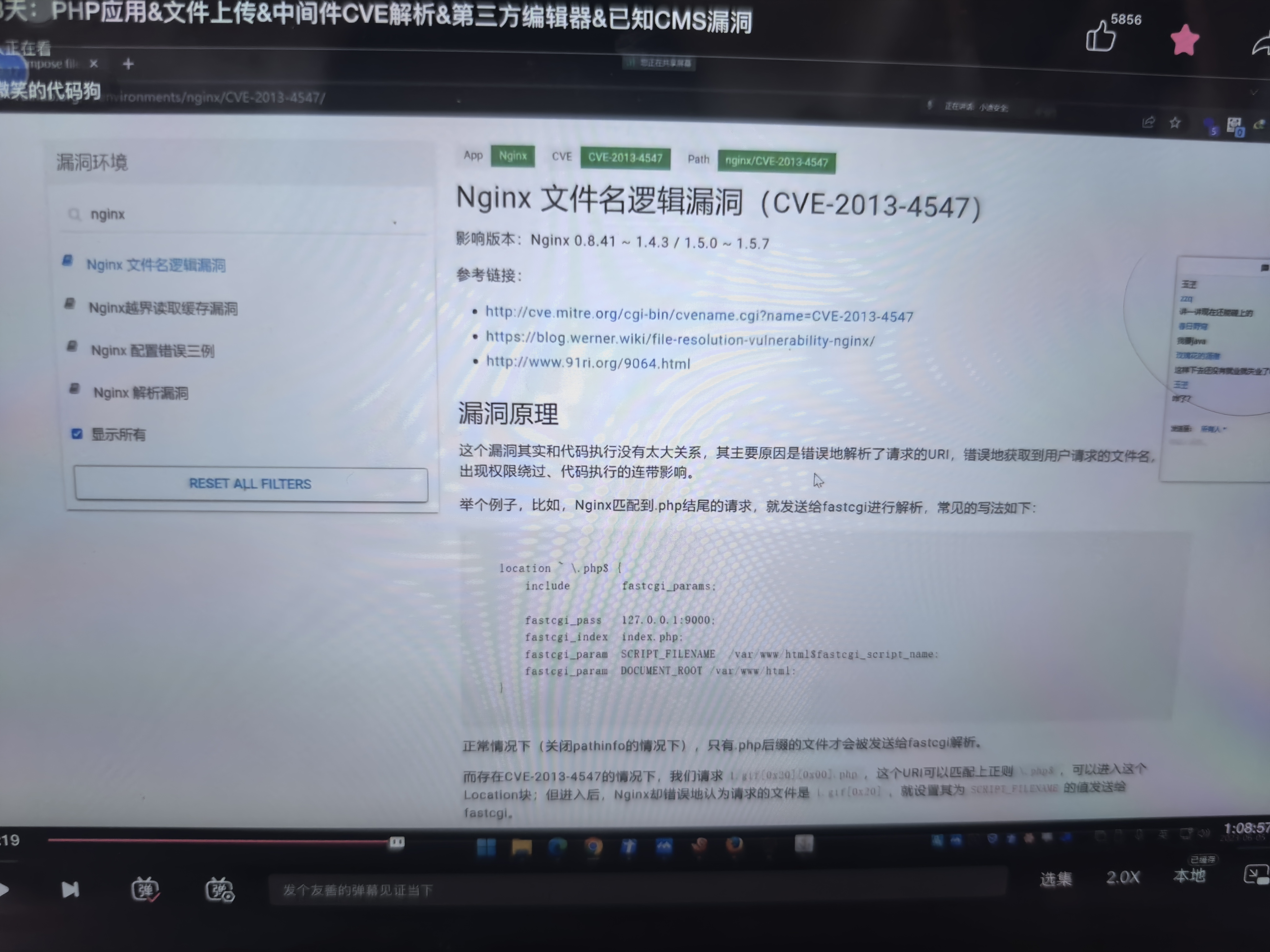 该漏洞的本质是 Nginx 对请求 URI 的解析逻辑错误,导致攻击者可通过构造含特殊字符的请求,绕过扩展名验证并执行恶意 PHP 文件。理解这一原理有助于从协议解析、配置加固、内容验证等角度构建防御体系。