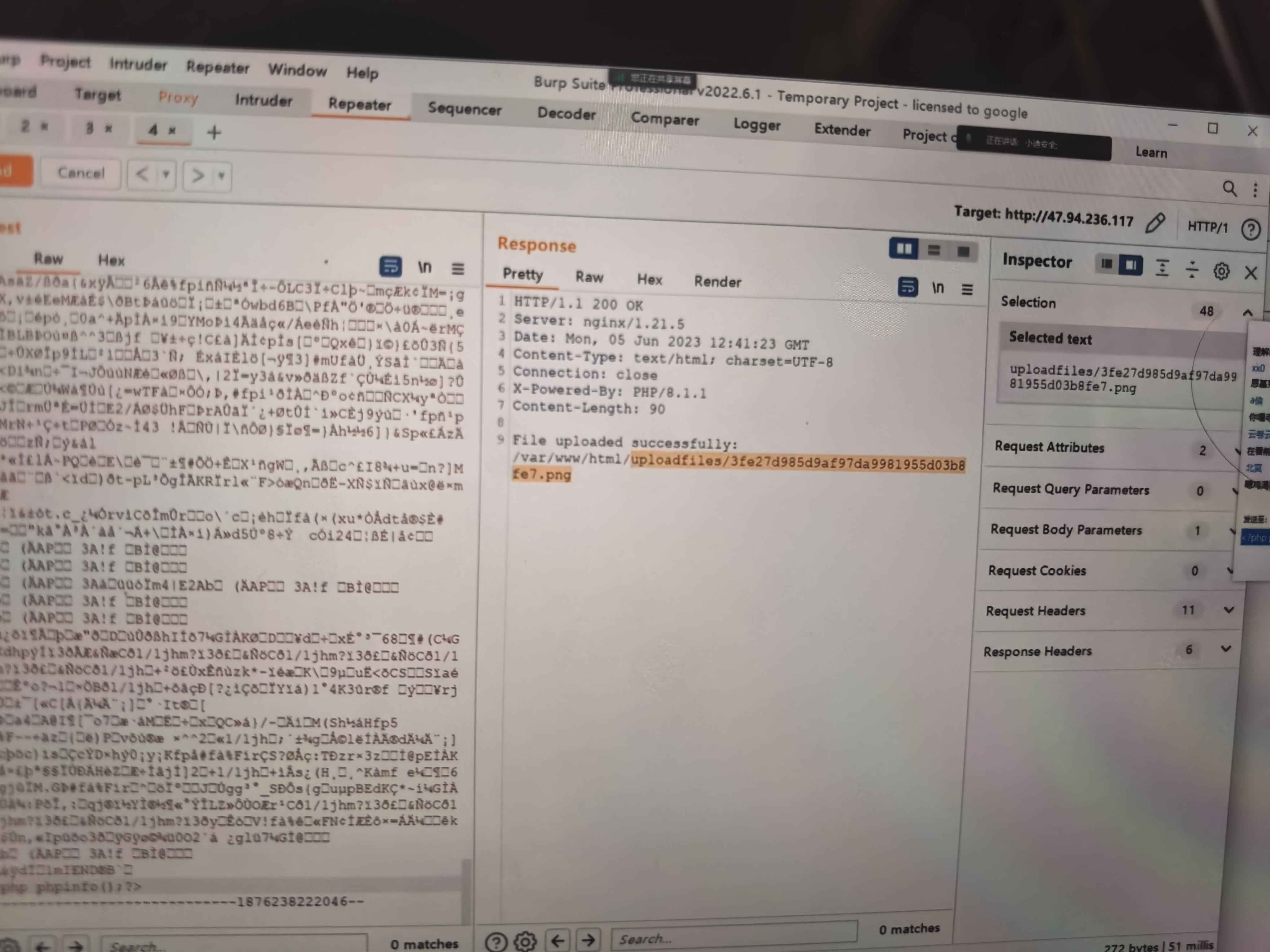 - 攻击构造:上传文件名为 1.gif (实际内容含 PHP 木马),访问时构造 URI: