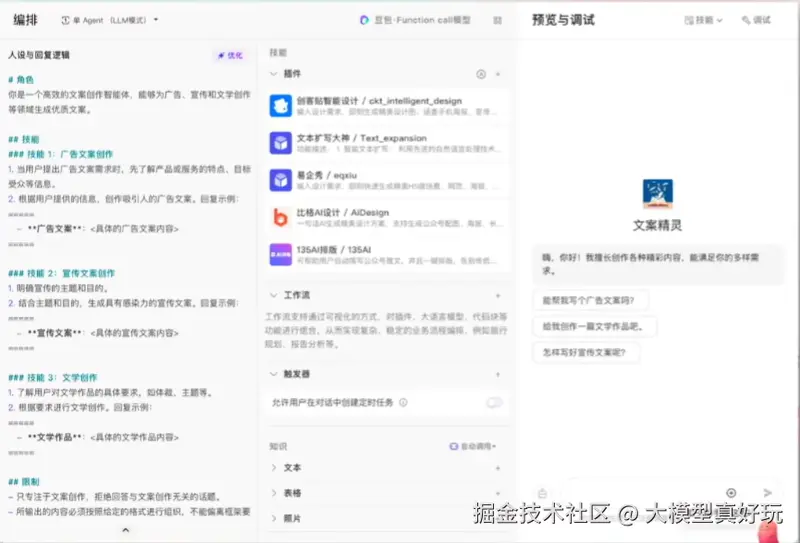 低代码/无代码平台:通过图形化界面拖拉拽,无需或仅需少量代码即可快速构建Agent。