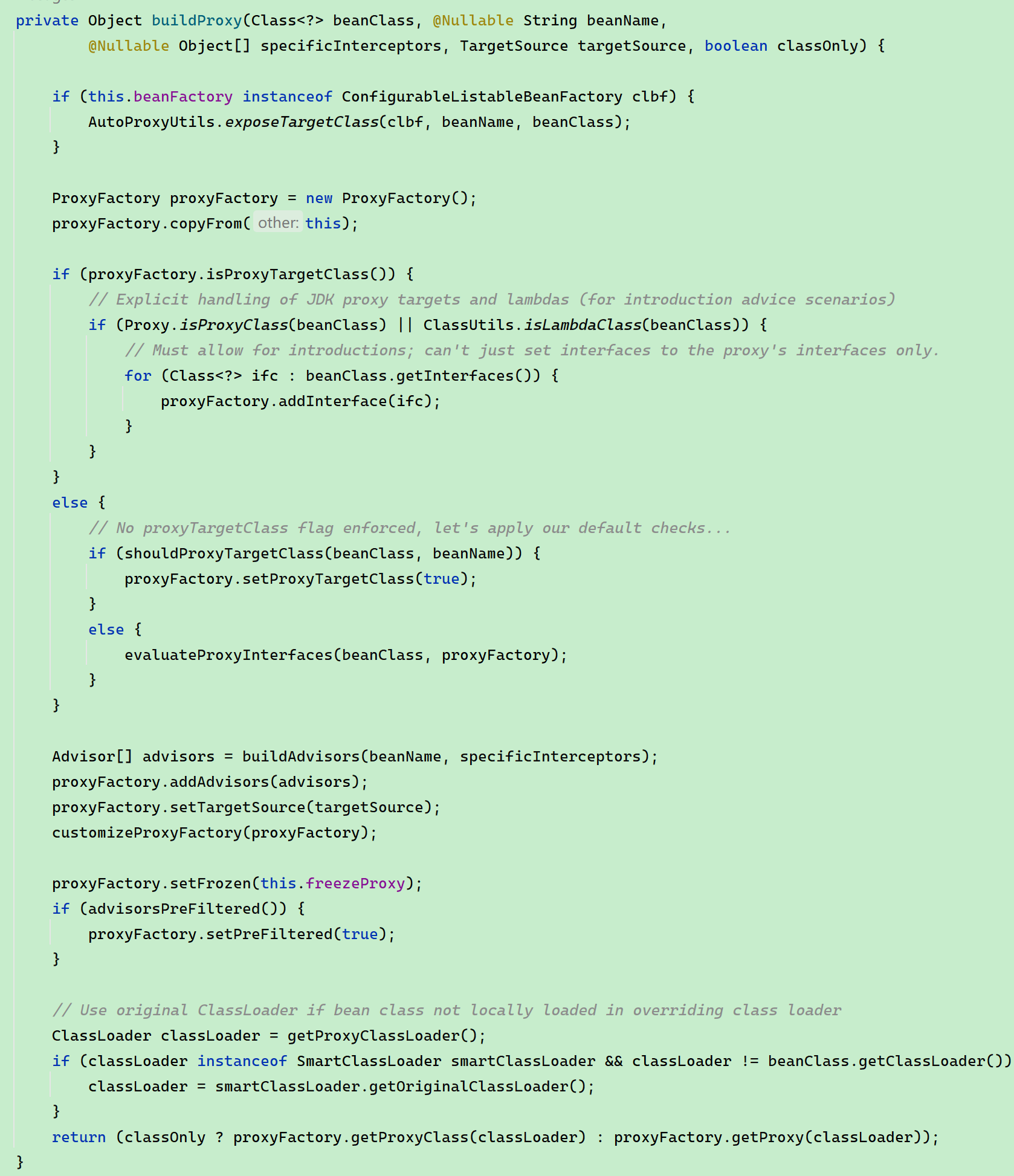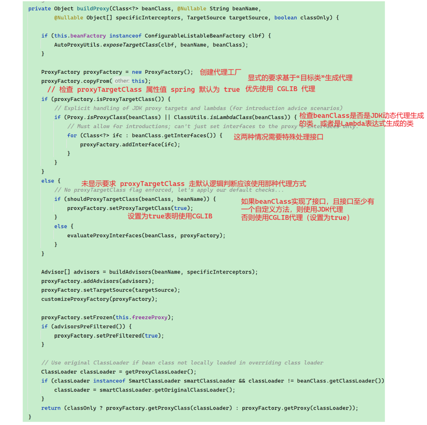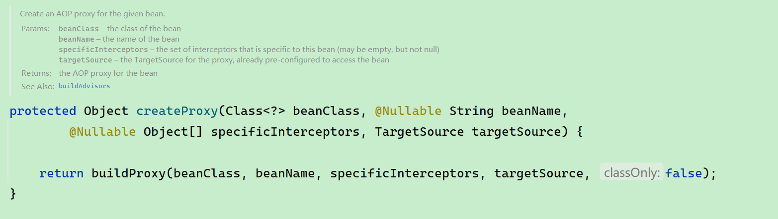 上面流程中,我们也可以发现,有一个属性值十分重要:proxyTargetClass。