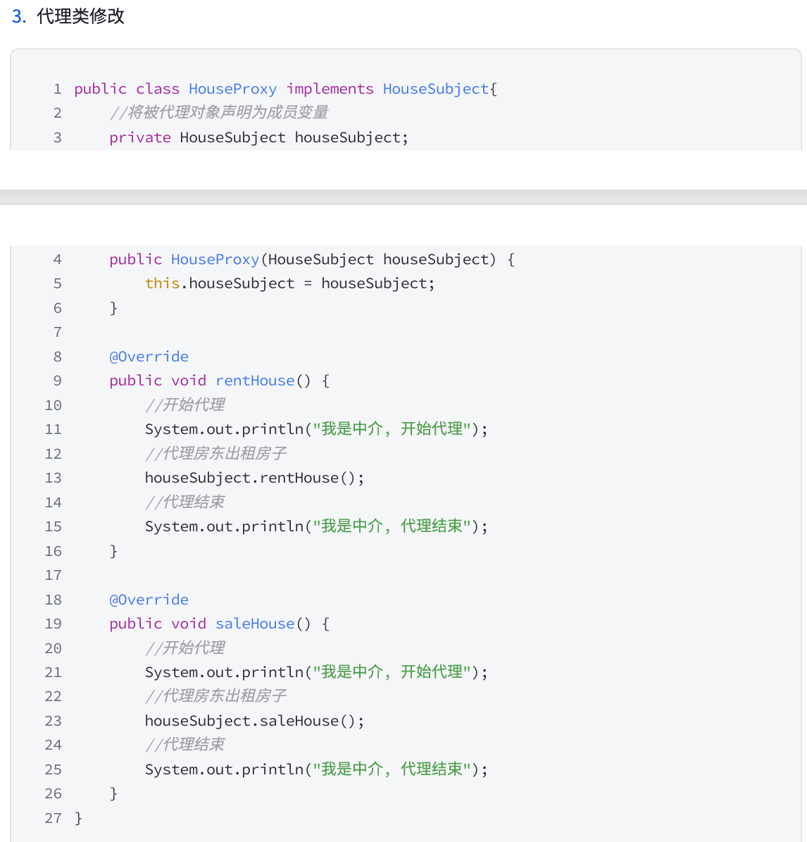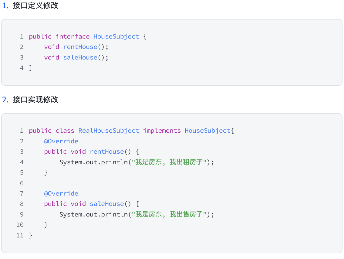 即,从上面栗子可以看出,增加新的需求后,修改接口和业务实现类的同时,还需要修改代理。