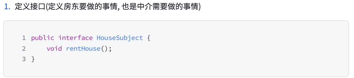 定义一个接口以及其实现类(即静态代理中的 HouseSubject 和 RealHouseSubject)
