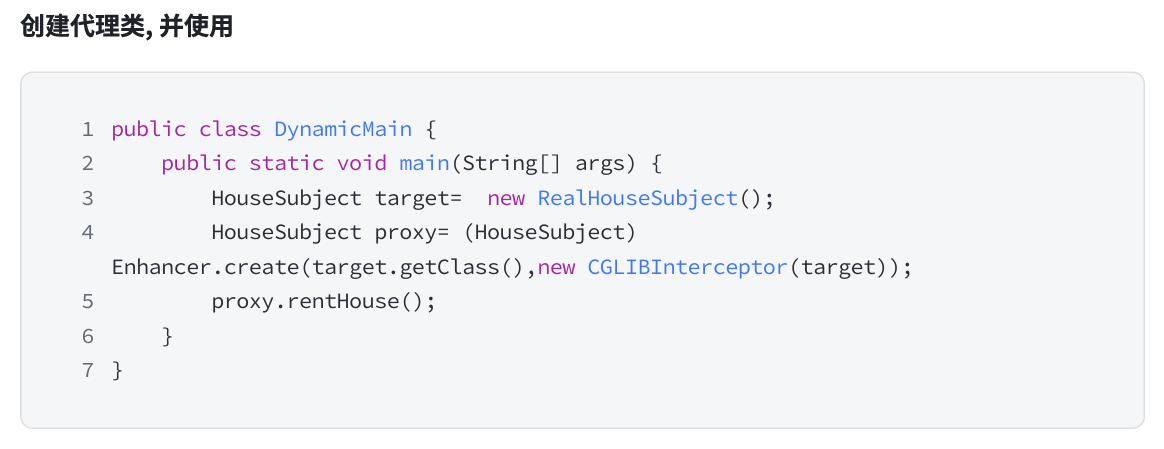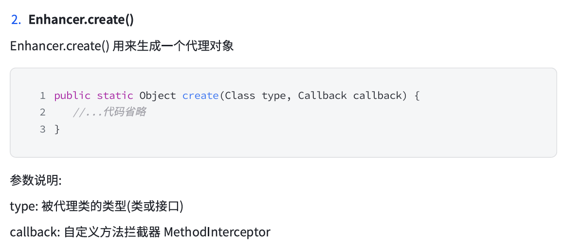 通过 Enhancer 类的 create() 创建代理类