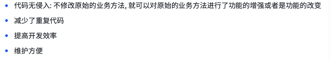 面向特定方法编程:例如前面我们举出的案例,强制登录校验拦截器,就是为了解决登录校验这一问题而做出的统一处理;统一异常处理,是为了解决抛出异常而做出的统一处理;统一数据处理,是为了解决数据返回格式做出的统一处理