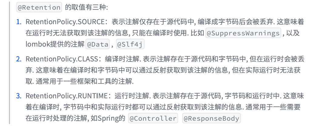 @Retention 注解标识了 Annotation 的生命周期