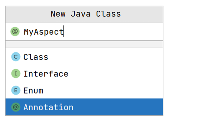 - 编写自定义注解:创建 Java 类时候选择 annotation