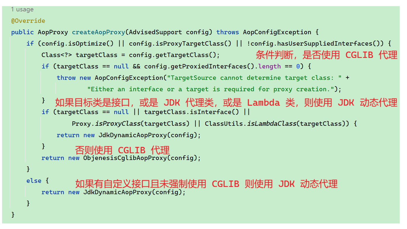 createAopProxy 的实现在 DefaultAopProxyFactory